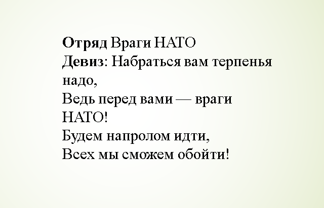 В названии юнармейского отряда и девиза к нему, должна проследоваться военная тематика, но без лишней агрессии.