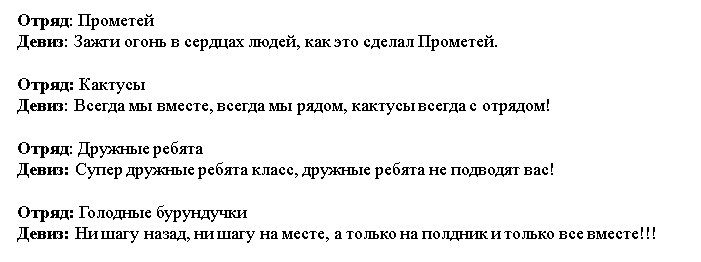 Коллектив детей и подростков, это общество ребят в школе или в летнем лагере, которых объединяют общие дела и интересы. Грамотно подобранные название отряда и девиз, сделают жизнь детей более интересной и запоминающейся. Мы постарались подобрать названия отрядов и девизов к ним для разных возрастных групп, которые должны понравиться ребятам.
