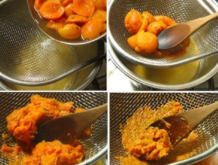 Подготовленные половинки уваривают до мягкости. Половинка абрикоса должна расползаться при надавливании. Перетереть плоды можно тремя способами.