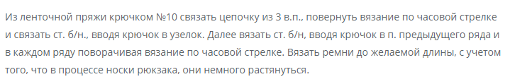 - Рюкзак крючком из трикотажной пряжи схема, с описанием и фото