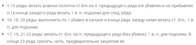 Следующий этап вязания — стенки рюкзака. Их следует вязать на петлях донышка по кругуперестав делать прибавки петель на поворотах.