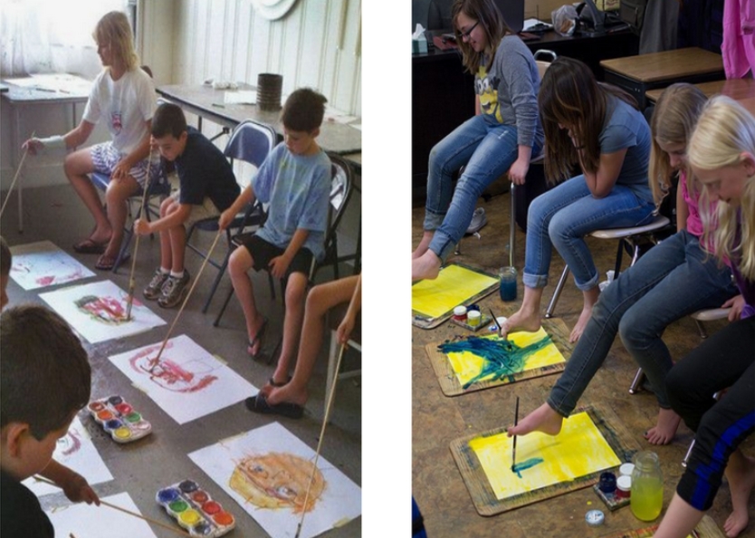 Игроки должны собрать в деревянный ящик все разбросанные на полу пробки, используя для этого только пальцы ног.