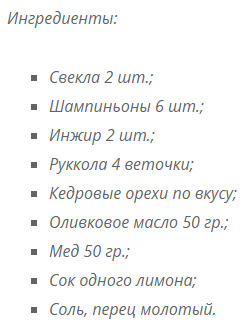 Ингредиенты: свекла, яблоко, орехи, сок лимона, растительное масло, сахар, крупная соль.
