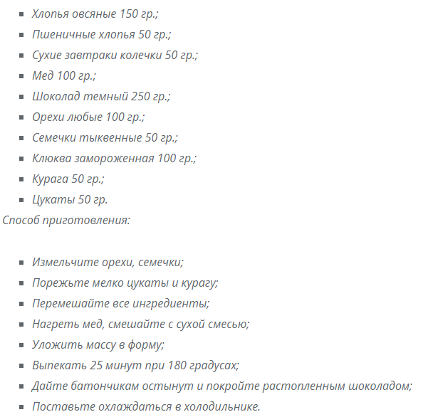 - сухофрукты;