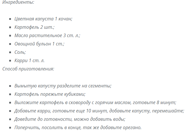Постные щи с цветной капустой