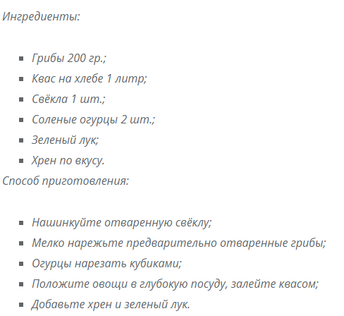 - Грибы, свежие 0,5 кг.;